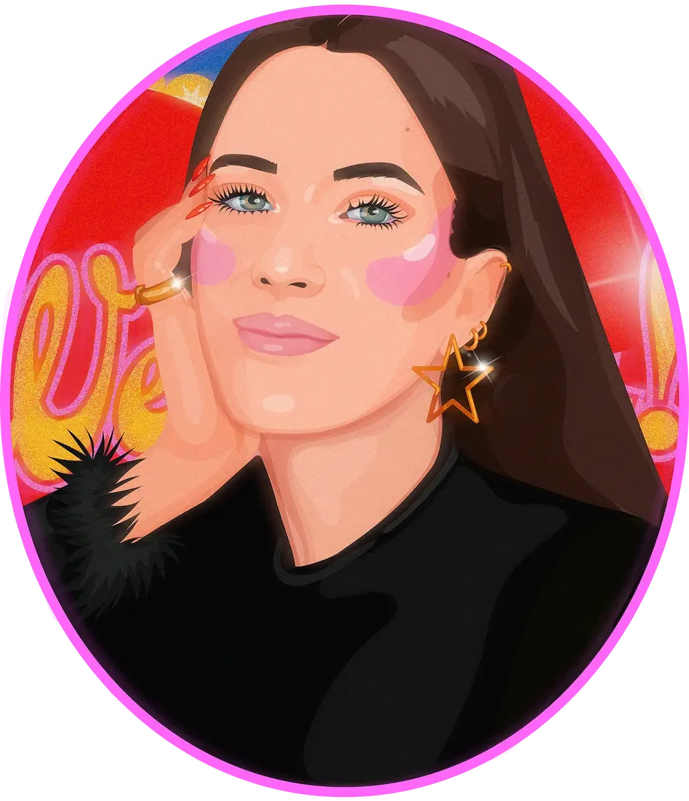 C’est pendant mes études en Direction Artistique et Design Graphique que mon style a vraiment émergé. Avec mon iPad et Illustrator, j’ai commencé à créer des portraits colorés, à glisser des références mode et rétro, et à oser des palettes qui claquent, le tout avec une petite touche seventies funky.